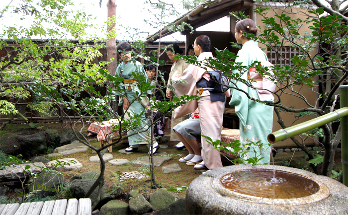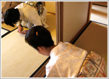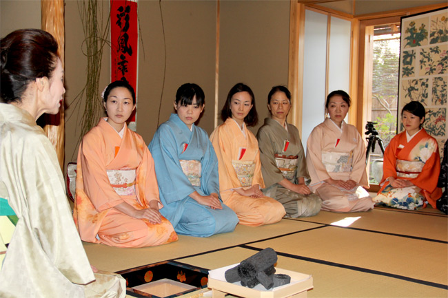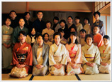 初釜は、新しい年を祝いお正月にはじめてかける釜の事。艶やかな着物姿で勢揃い。