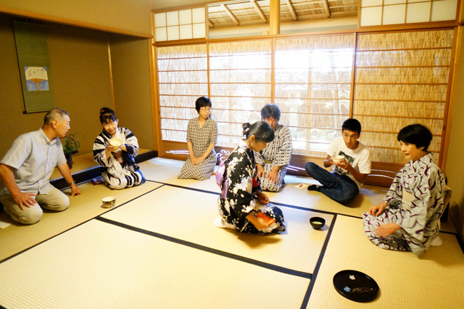 平成24年8月に実施した、浴衣で行う「ゆかた茶会」。ご近所さんや生徒さんのご家族、ご友人もお呼びしてにぎやかで楽しいお茶会となりました。