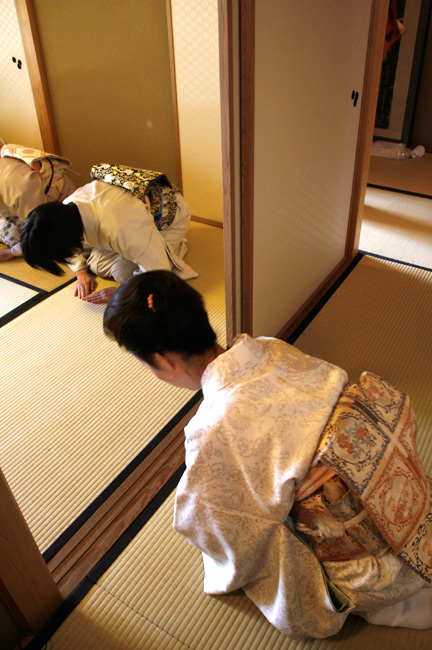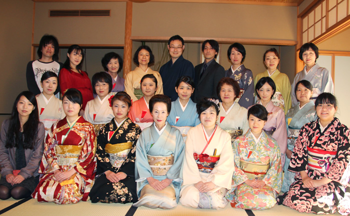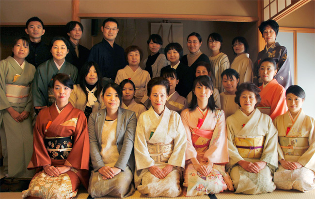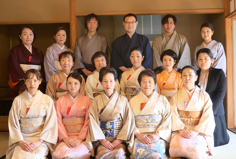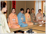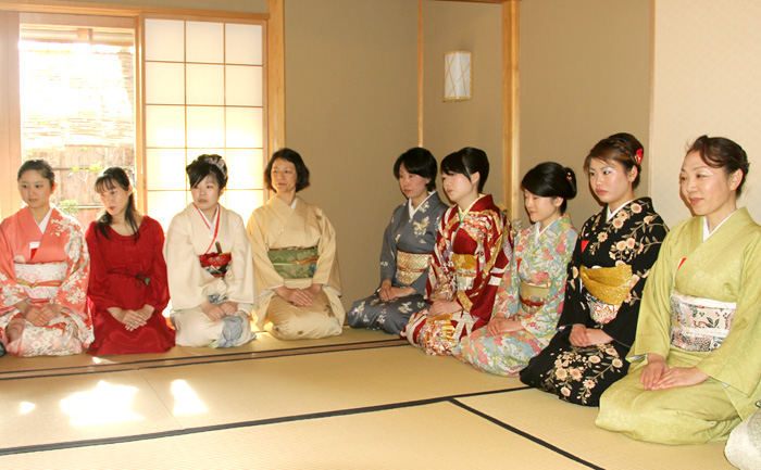 初釜は、新しい年を祝いお正月にはじめてかける釜の事。艶やかな着物姿で勢揃い。