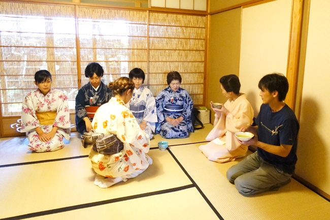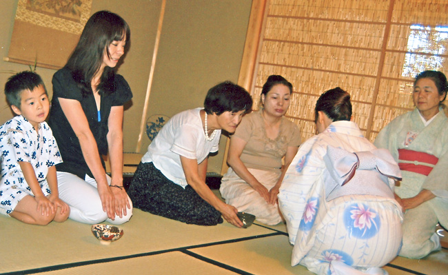 平成24年8月に実施した、浴衣で行う「ゆかた茶会」。ご近所さんや生徒さんのご家族、ご友人もお呼びしてにぎやかで楽しいお茶会となりました。