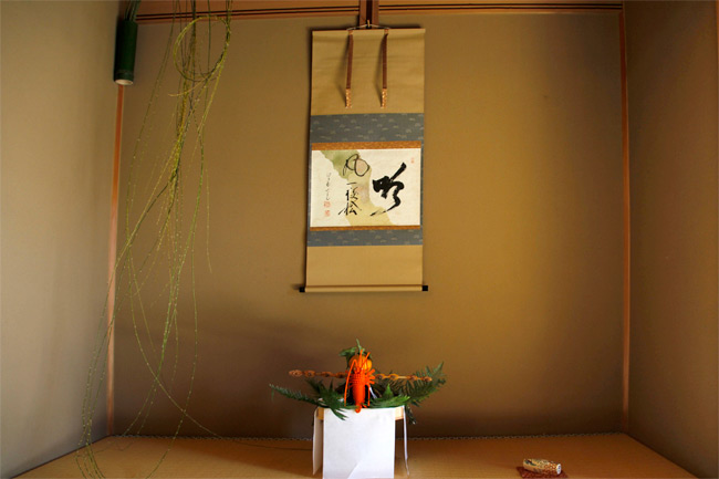 毎年新年に行われるお正月を祝うめでたい茶会。日陰の鬘や、蓬莱飾りなど、正月だけの特別な飾りもご紹介いたします。